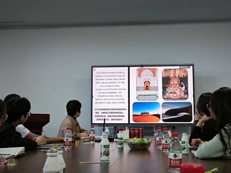 摩洛哥留學生德班給海博生物開展當?shù)仫L土人情、建筑、文化的分享會,讓大家了解異國風俗,加強與留學生的交流合作。