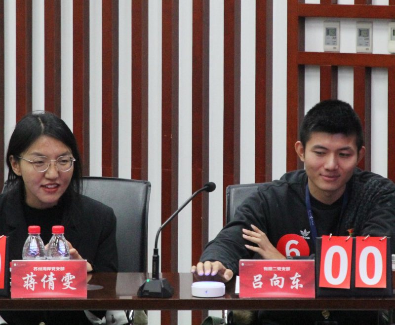 獲得二等獎(jiǎng)的是來(lái)自蘇州海岸黨支部的蔣倩雯和有限工廠黨支部的呂向東